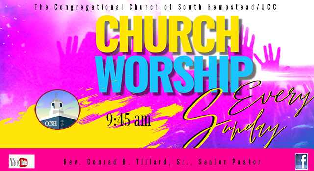 At The Congregational Church of South Hempstead/United Church of Christ, we WORSHIP God, we WALK Jesus' way, we CARE for God's creation and we SHARE God's abundance.